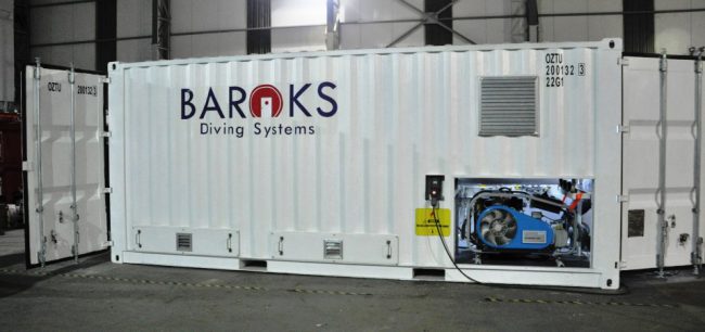 The One Man Transportable Decompression Chamber is a single lock hyperbaric chamber for diver rescue. The One-man chamber is equipped with a standard NATO flange STANAG 1079 to permit the diver transferring under pressure to a fixed hyperbaric facility where treatment can be completed. The overall weight of the aluminium chamber is limited to 163…